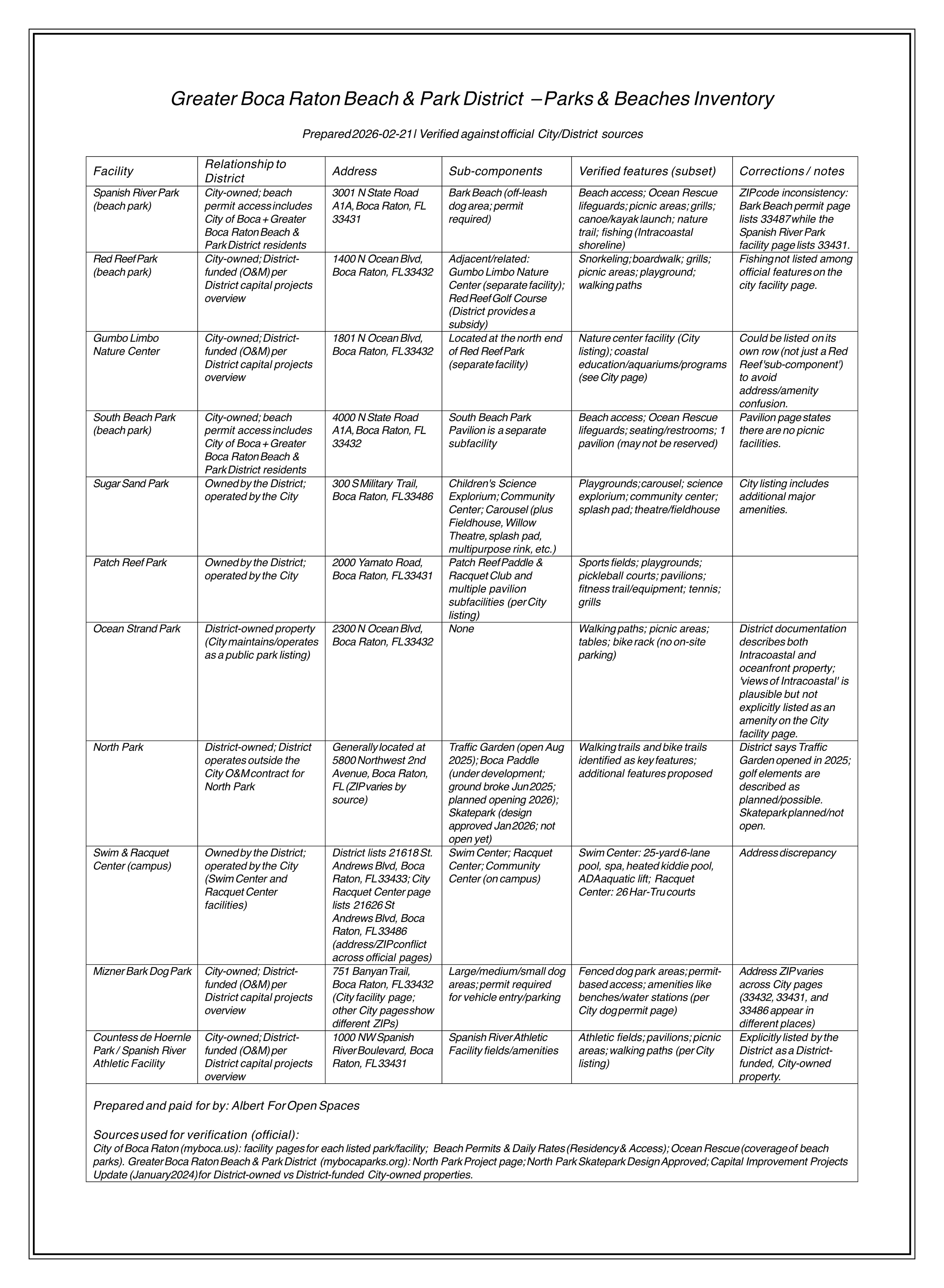 List of District Assets / Inventory Below, I compiled what I believe is a complete list of all beach and parks assets under the auspices of the Greater Boca raton Beach and Parks District. Please visit my Get In Touch form with any errors or omissions.